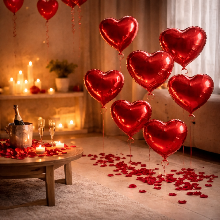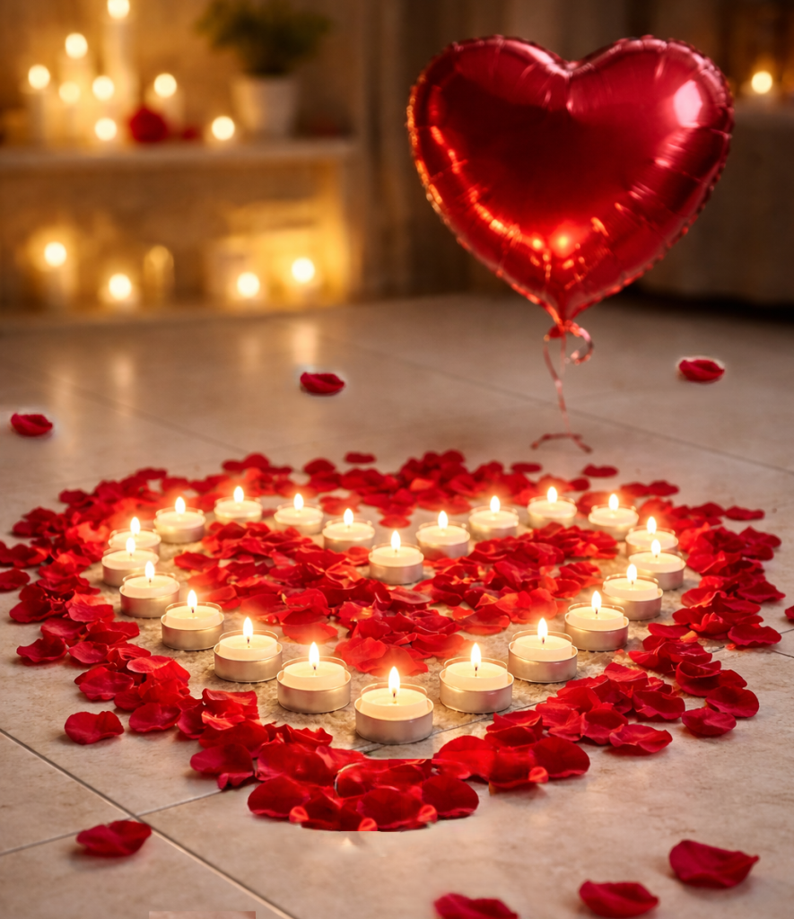 Me disa tullumbace të kuqe zemra, qirinj, petale dhe trendafila të kuq, mund të krijosh një surprizë të thjeshtë, por të paharrueshme.
