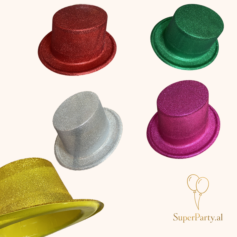 Kapele Cilindrike plastike me glitter për festa dhe evente festive.
