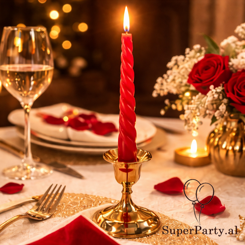 Qirinj dekorativë me dizajn spiral dhe ngjyrë të kuqe intensive, idealë për tavolina festive, darka romantike apo ambiente të ngrohta.