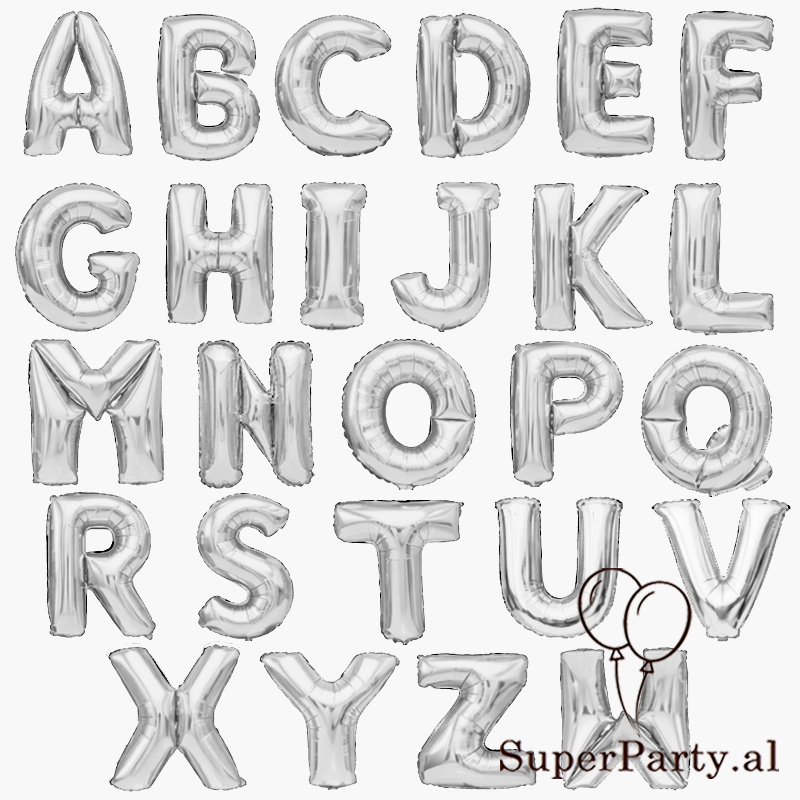 Shkronja dekorative foil në ngjyrë silver, ideale për festa, ditëlindje dhe evente speciale.